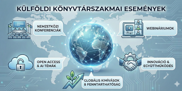 2026. február 24. – IATUL – Online konferencia: Előremutató innováció az akadémiai könyvtárakban 2026. február 25. – NLISN – A neurodivergens-szakemberek tapasztalatai az akadémiai könyvtárakban 2026. február 26. – Europa Nostra – a „2026-os év 7 legveszélyeztetettebb európai örökségi helyszínének” élő bejelentése 2026. február 26. – CHOICE – Webinárium: A mesterséges intelligencia felhasználása együttműködő partnerként az etikus kutatás és írás területén 2026. február 26-27. – BVS, VDB, BIB, VÖB – Graz – 3. DACHS nemzetközi konferencia 2026. február 27. – LIBER – LIBER AI Pulse webináriumsorozat